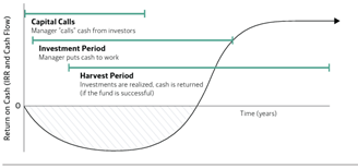 From The Life Cycle of Private Equity, by Blackstone. ..” capital will begin to be deployed by investing in opportunities selected by the [General Partner]GP in the first 3-5 years. The final 3-7 years, the harvest period, is generally when most investments are realized, and the fund, if successful, returns any cash to investors.”.
