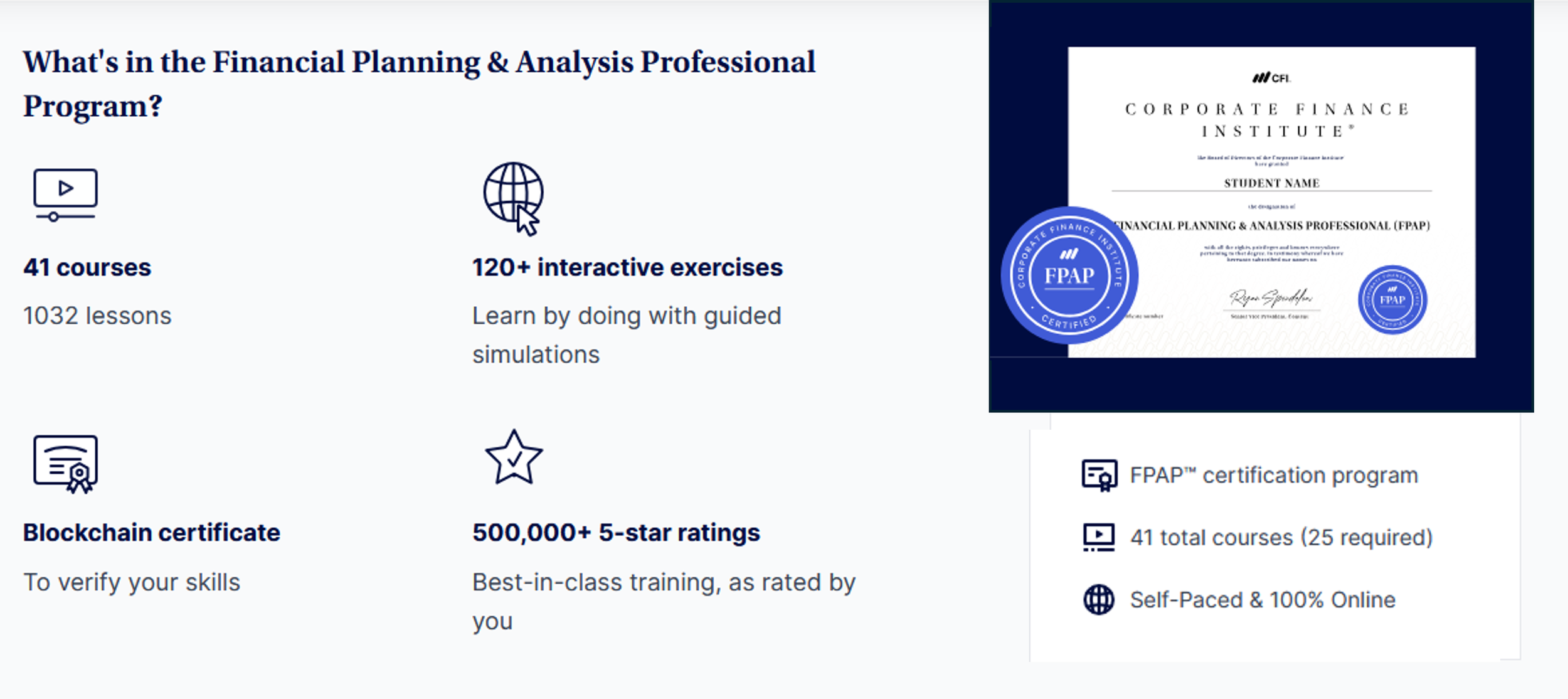The FP&A Professional certificagtion by CFI is a professional development program designed to build essential skills for financial planning and analysis roles.